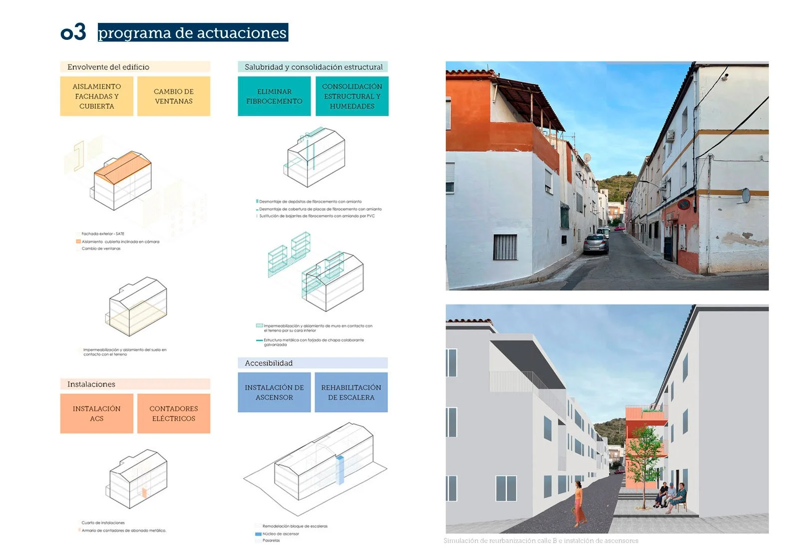 Sobre esta base se diseñó un plan de acción integral con intervenciones progresivas en vivienda, espacio público y dinámicas sociales, priorizando los ámbitos en peor estado.